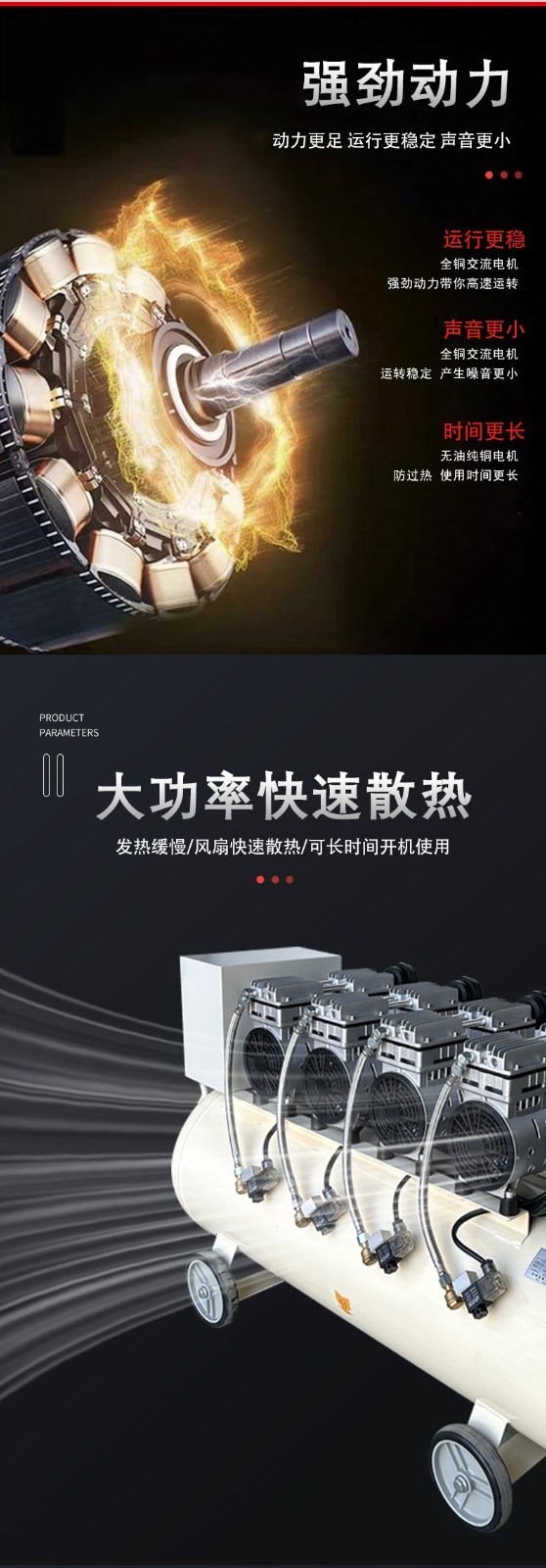 - 壓縮過(guò)程:活塞向上運(yùn)動(dòng),氣缸容積減小,空氣被壓縮,壓力升高。由于采用特殊的活塞環(huán)和氣缸材料,如聚四氟乙烯等自潤(rùn)滑材料,活塞與氣缸之間形成良好的密封和潤(rùn)滑,無(wú)需潤(rùn)滑油,就能保證壓縮過(guò)程的順利進(jìn)行。