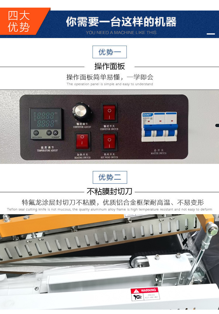切熱收縮機(jī)在產(chǎn)品包裝中應(yīng)用廣泛,具有包裝效果好、效率高、適用范圍廣等優(yōu)勢(shì),但也存在設(shè)備成本高、維護(hù)復(fù)雜、能耗較大等劣勢(shì)。具體分析如下: