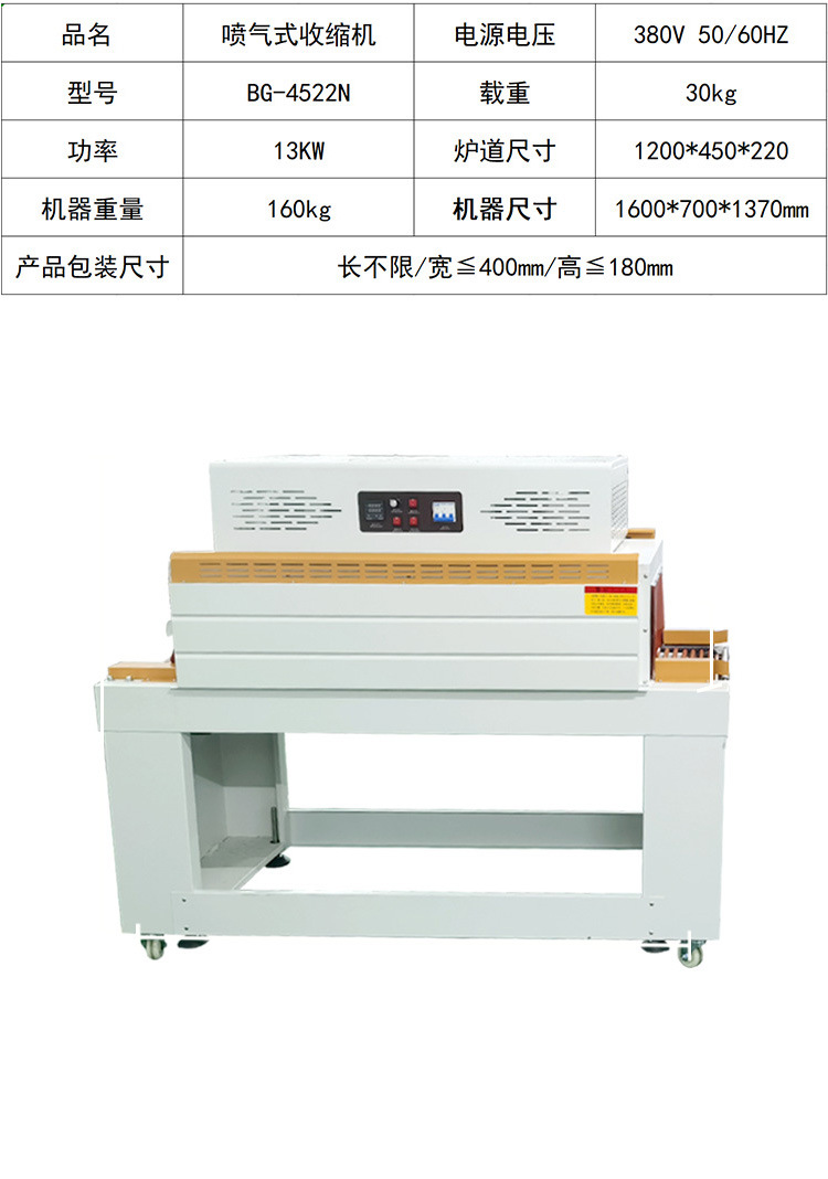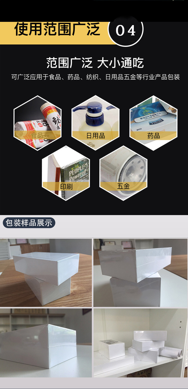- 包裝效果好:能使熱收縮薄膜緊密貼合產(chǎn)品表面,不僅能保護(hù)產(chǎn)品,還能清晰展現(xiàn)產(chǎn)品外觀,提升產(chǎn)品視覺效果,增強(qiáng)產(chǎn)品在市場(chǎng)上的吸引力與競爭力。