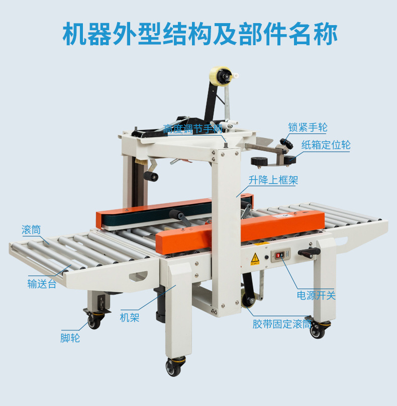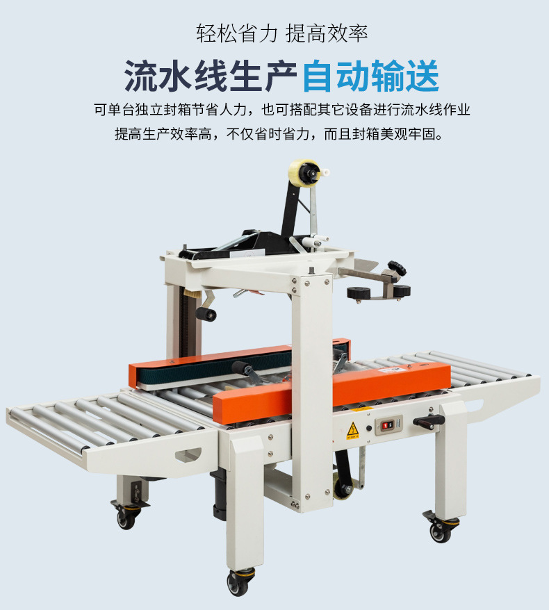 封箱機(jī)是一種用于對(duì)紙箱進(jìn)行封裝的設(shè)備,在各類生產(chǎn)企業(yè)和物流配送中心應(yīng)用廣泛。以下是關(guān)于封箱機(jī)的詳細(xì)介紹: