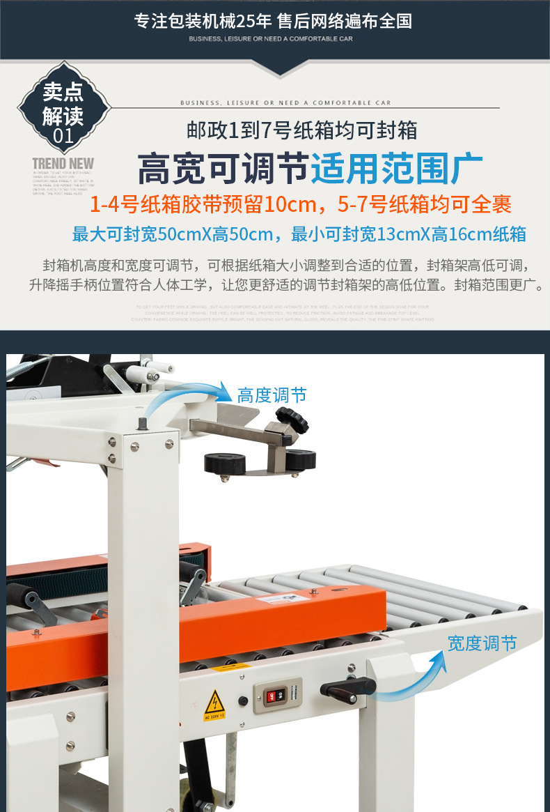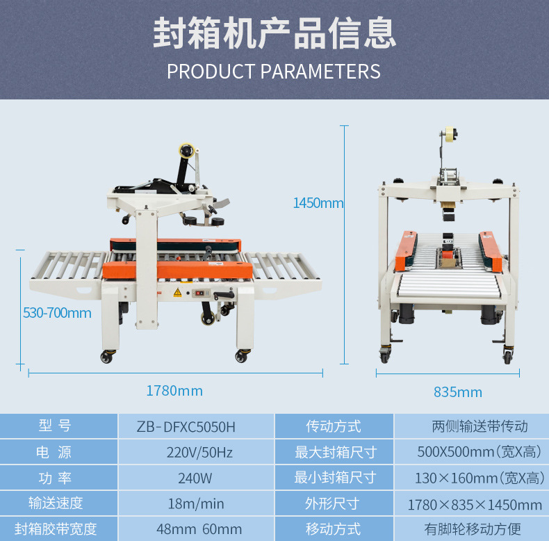 - 紙箱尺寸限制:不同型號(hào)的封箱機(jī)通常適用于一定尺寸范圍內(nèi)的紙箱封箱,如果企業(yè)需要包裝的紙箱尺寸變化較大,可能需要更換不同規(guī)格的封箱機(jī)或?qū)υO(shè)備進(jìn)行調(diào)整,這會(huì)影響生產(chǎn)效率和增加成本