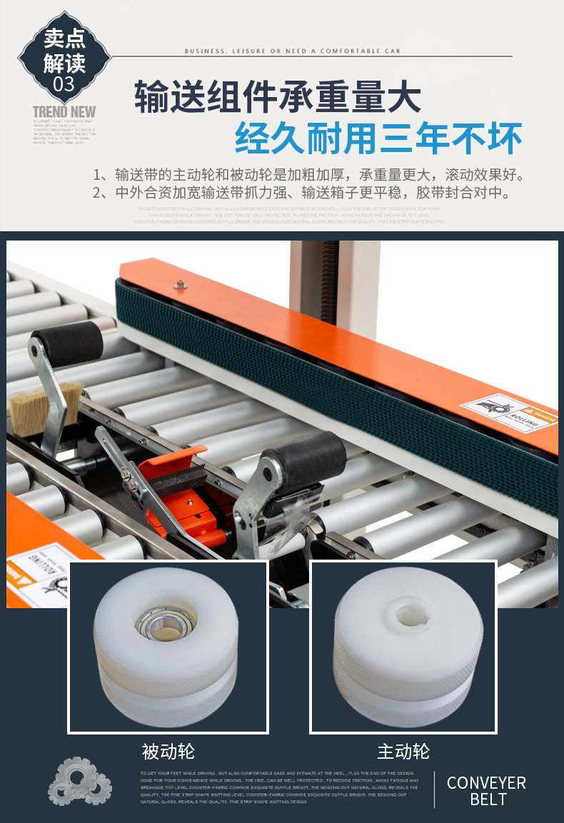 - 輸送系統(tǒng):主要由輸送帶、傳動(dòng)輥和電機(jī)等組成,用于輸送紙箱,使其按一定速度平穩(wěn)地通過(guò)封箱機(jī)的各個(gè)工作區(qū)域。