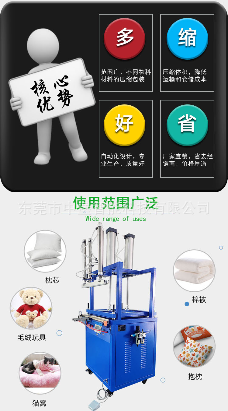 - 壓縮能力:根據(jù)要包裝物品的體積和重量,選擇具有合適壓縮能力的包裝機(jī)。如果是蓬松的衣物、棉被等,需要較強(qiáng)的壓縮力才能達(dá)到理想的壓縮效果。