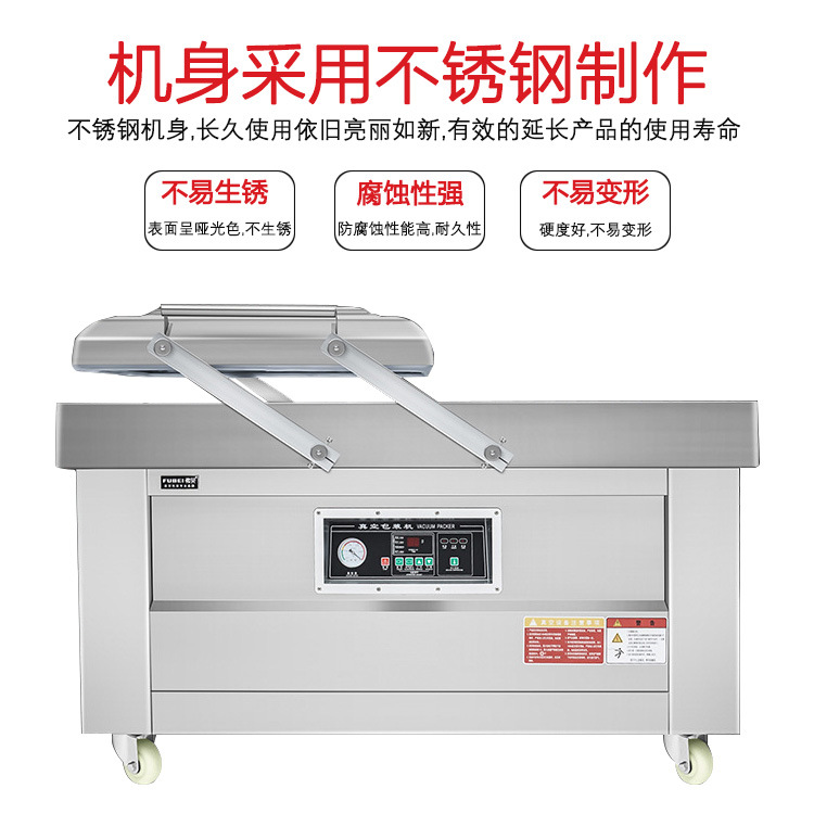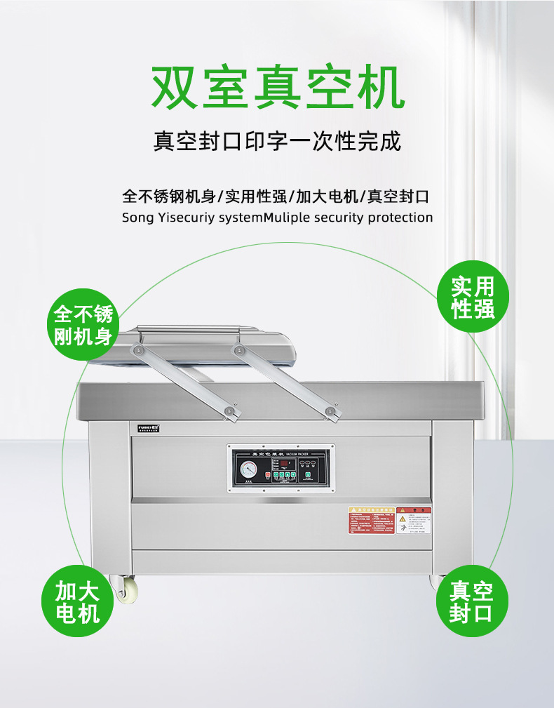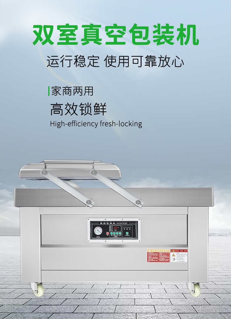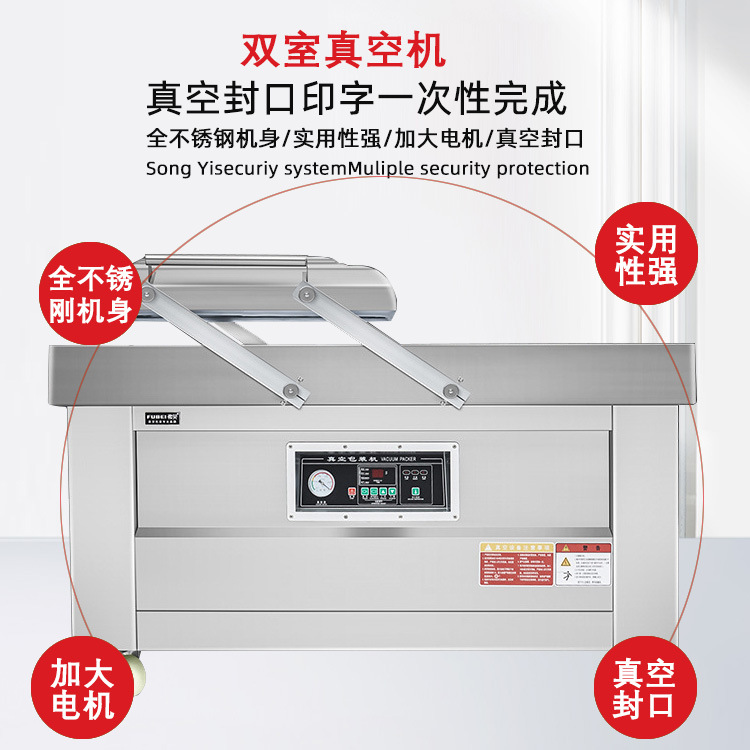 雙室真空包裝機可在真空包裝的基礎上,向包裝袋內(nèi)充入氮氣、二氧化碳等惰性氣體或混合氣體,起到更好的防腐、防潮、防氧化等保質(zhì)效果