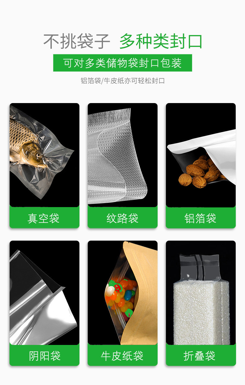 - 包裝效果好:采用改良的變壓器和電熱棒,電熱帶壽命長,封口美觀,且配備雙峰式封口線,密封不漏氣,能有效防止包裝內(nèi)容物泄漏和外界空氣、水分等進入1。