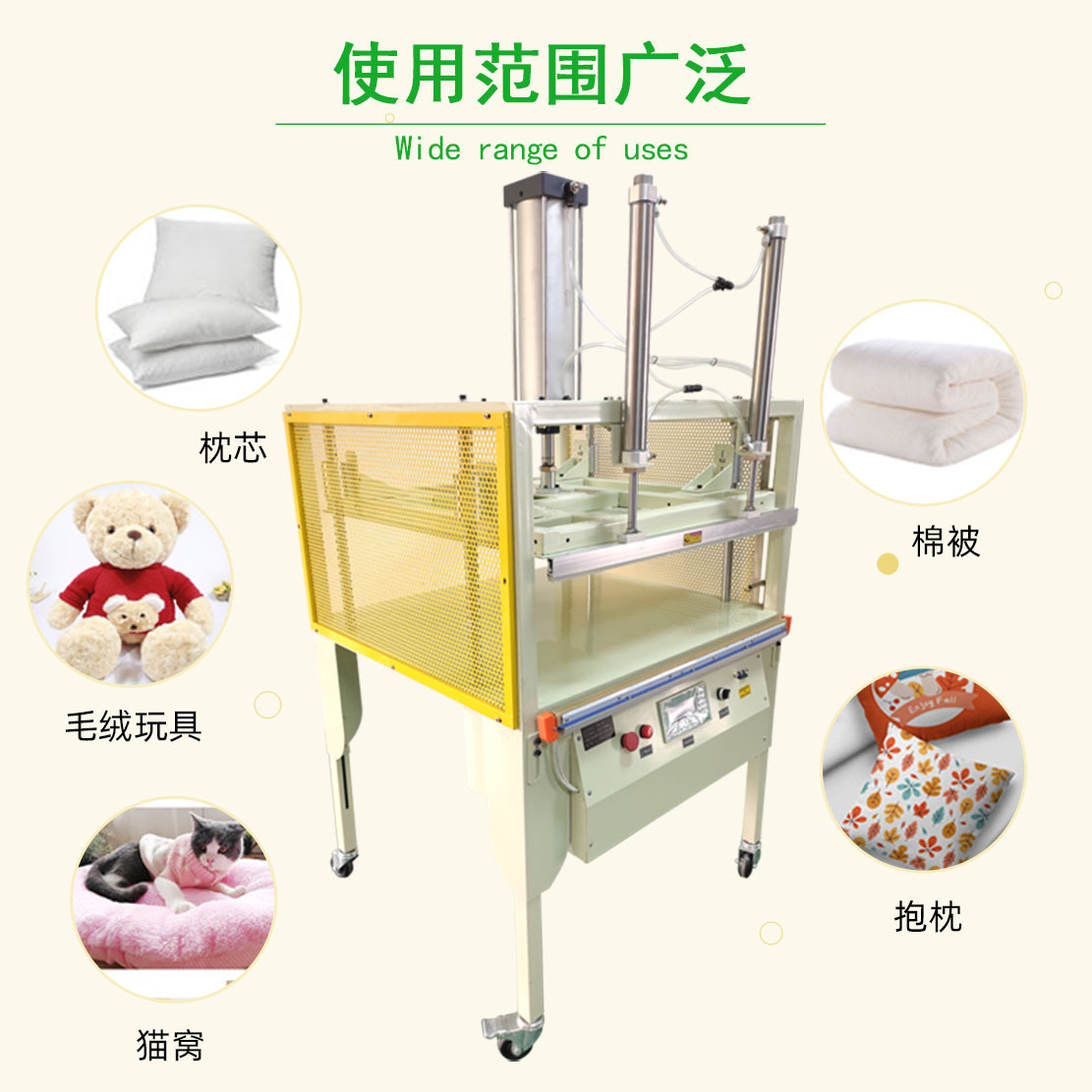 - 家紡行業(yè):主要用于羽絨被、棉被、枕頭、靠墊等家紡產(chǎn)品的壓縮包裝,方便儲(chǔ)存和運(yùn)輸1。