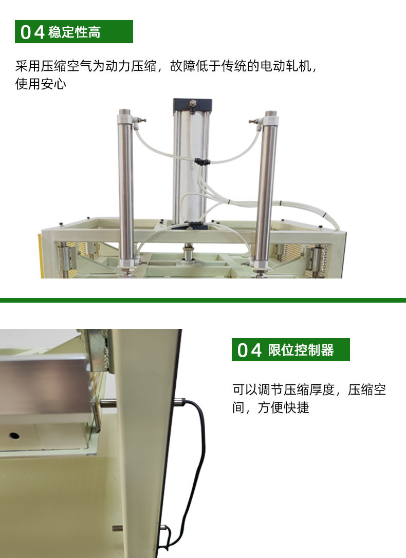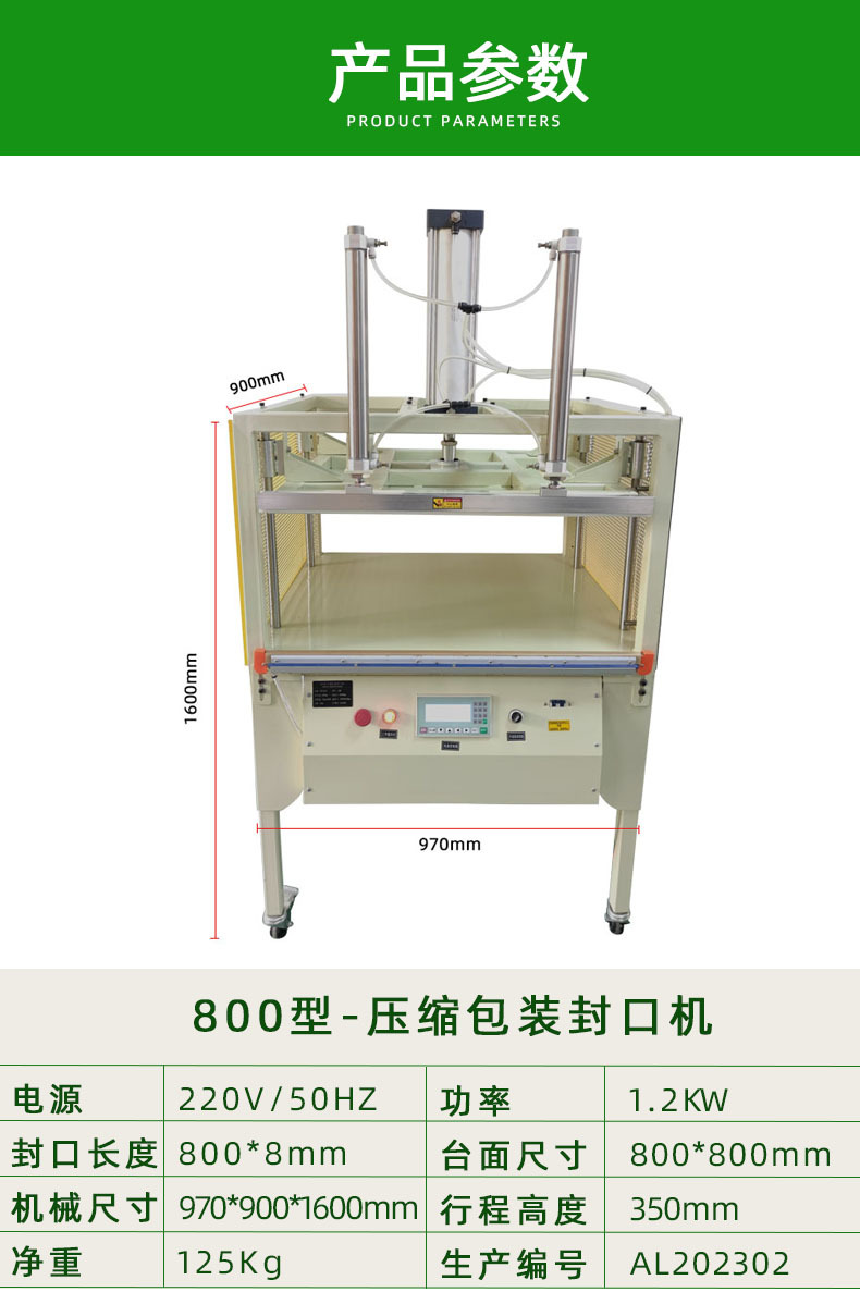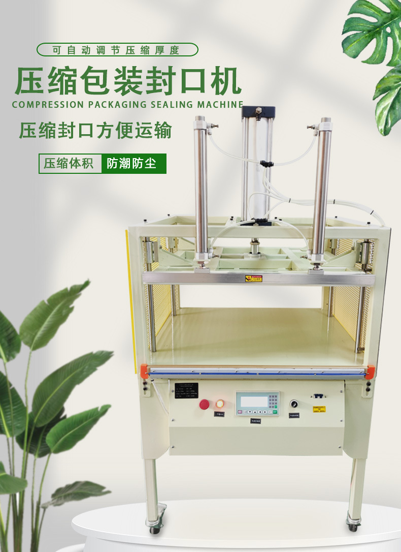 壓縮封口機(jī)的壓縮裝置:包括氣缸、活塞、壓板等部件,是實(shí)現(xiàn)壓縮功能的核心部分,提供壓縮所需的動(dòng)力和壓力傳遞。