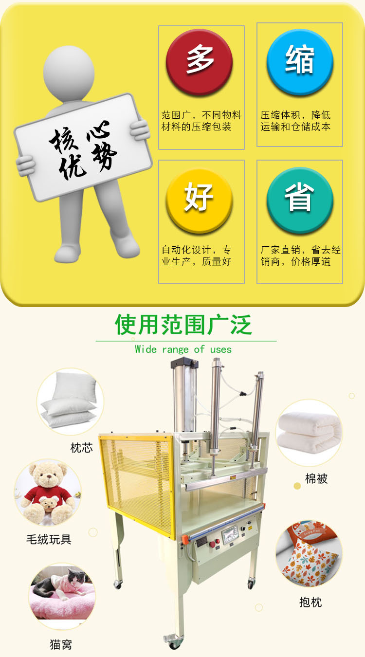 - 高效壓縮:能快速有效地壓縮蓬松物品,如羽絨被服、枕頭等,大大縮小包裝體積,減少儲(chǔ)存空間和運(yùn)輸成本1。
